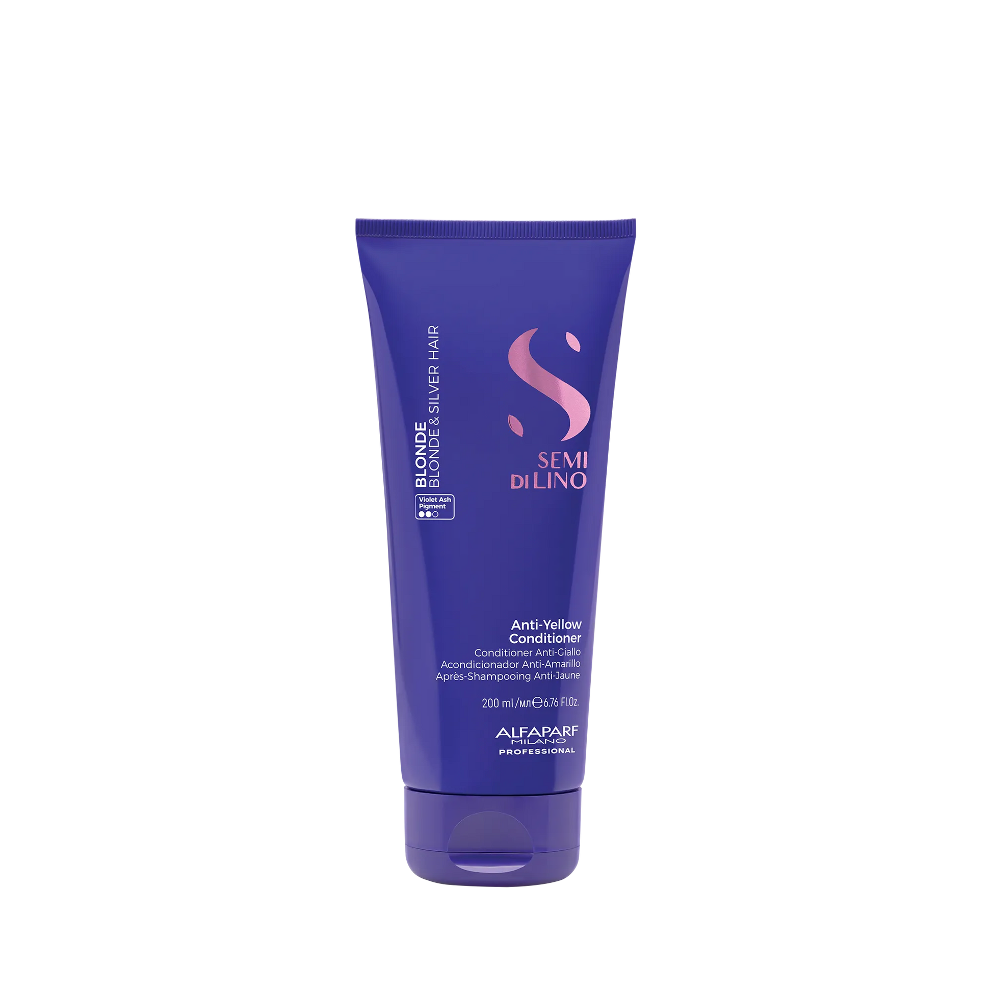 Alfaparf Milano ProfessionalĀ Semi Di Lino Blonde Anti-Yellow Conditioner detangles hair and neutralises unwanted yellow tones. It revitalises and moisturises the hair without weighing it down.