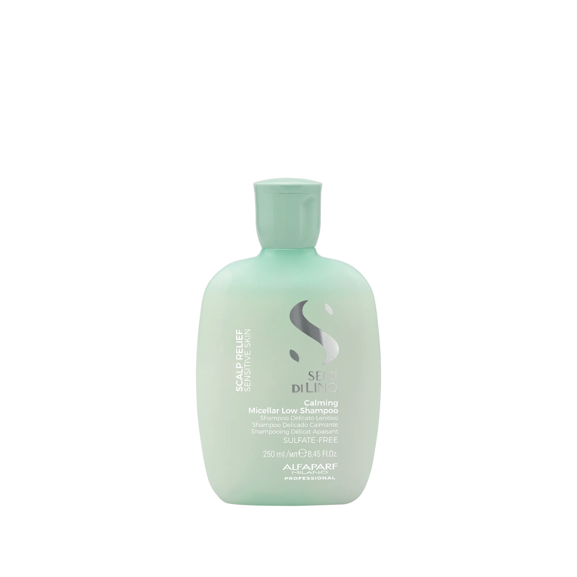 Alfaparf Milano Professional Semi di Lino Scalp Relief alleviates itchy and sensations of discomfort in sensitive skin. Calming Micellar Low Shampoo has a soothing effect on sensitive scalps, it gently cleanses and alleviates feelings of discomfort. Scalp Relief is for sensitive skin.